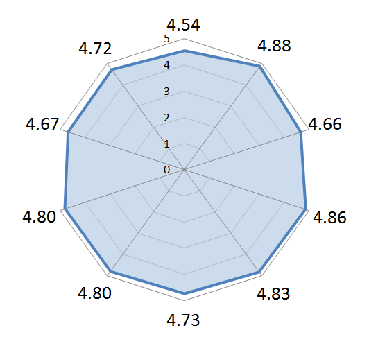4.67 分以上,最高達 4.88 分,演講總平均達 4.77 分。(滿分為 5 分)